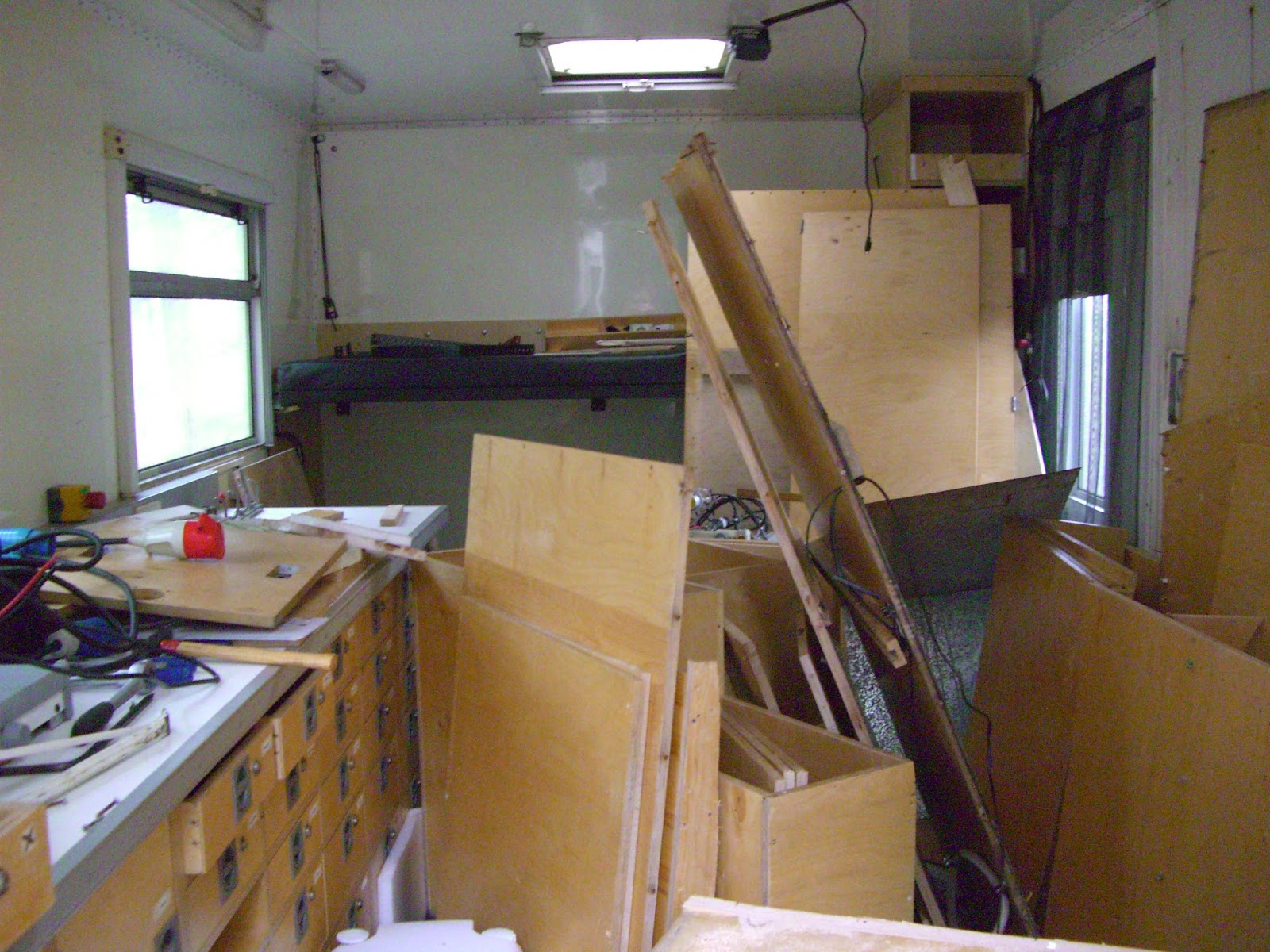 Da wir gut mit einer Tür an der rechten Seite auskommen, muss die hintere Tür zugunsten eines Anbaus für das spätere Festbett weichen: