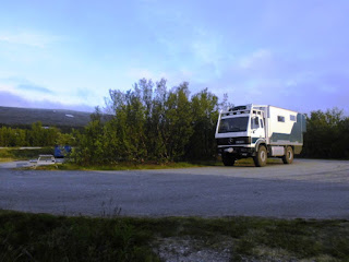 Wir fahren ein in Kárášjohka, einer Kleinstadt vor der Norwegisch/Finnischen Grenze. Von hier aus fließt der gleichnamige Fluß nordwärts und bildet in seiner Mitte die Grenzlinie beider Staaten. Außer einem Sommerkamp der Samen und einer Messermanufaktur bietet der Ort nichts besonderes.