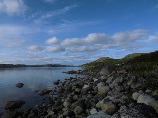 Wir fahren durch die Finnmark! Viel saftiges Grün, viel fließendes Wasser, weniger hohe Berge aber dafür viele hungrige Mücken____sehr viele!
