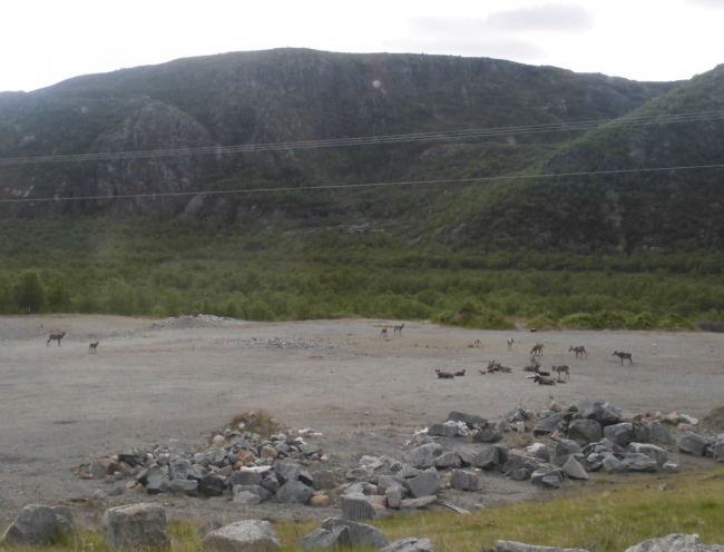 Abwechslung bringen auch die Rentiere,  die unorthodox die Strassen überqueren. Erst nur zwei,