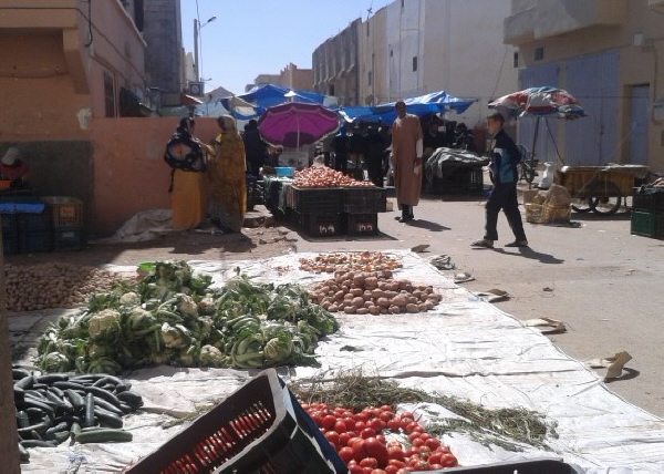 Markt unter schattenspendenden Plastikplanen – einfach aber effektiv