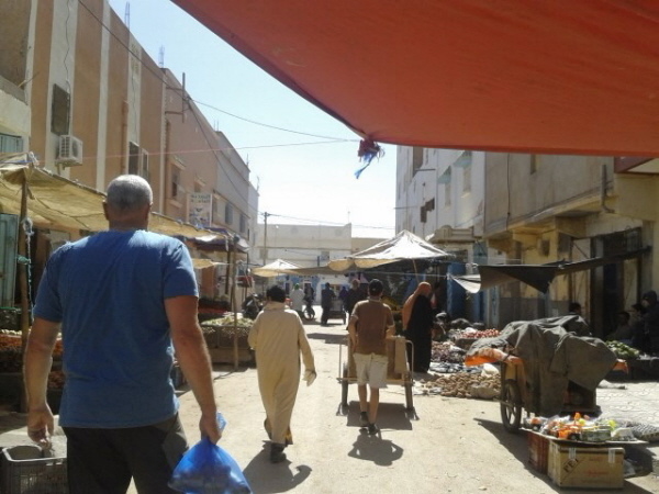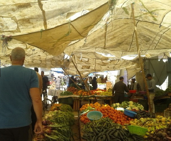Im Gegensatz zu unserem letzten Besuch statten wir diesmal auch dem örtlichen Souk einen Besuch ab, um Gemüse, Eier und Oliven zu kaufen. Immer wieder erstaunlich, welche Mengen von Gemüse hier angeboten werden. Da jeder der mindestens 20 Händler ein sehr ähnliches Sortiment hat, fragen wir uns: wo sind die ganzen Leute, die das viele Gemüse kaufen?? Wir bekommen es wohl nicht heraus. Macht auch nix. Wir schauen uns jedenfalls ein wenig um und sorgen für Proviantaufstockung, bevor wir weiter nach Norden fahren.