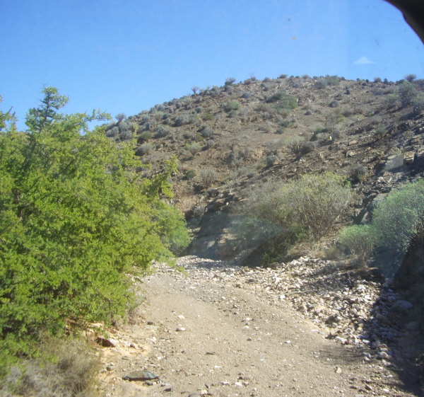 Die Piste verläuft mal im und mal neben dem Flussbett – mit dem effekt ,dass wir x-mal alle möglichen (und unmöglichen) Böschungen hoch und ´runter kraxeln und immer wieder erstaunt, sind, wie gut der Sternwanderer die teils steilen und recht tiefen Abhänge meistert.