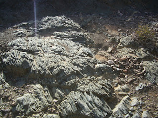 | Direkt neben dem Kies strecken sich uns fiese scharfe Steine entgegen |