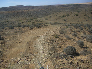 Nach einiger Zeit kommen wir in einem Hochtal an, das nur scheinbar so einsam ist. Hier wohnt zwar weit und breit keine Menschenseele aber die Gegend scheint ein Wiederaufforstungsgebiet zu sein, in dem schon mal ziemlich viele Löcher für Setzlinge gebuddelt wurden. Gelegentlich kommt hier also wohl mal jemand vorbei.