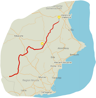 Am nächsten Tag wollen wir weiter nach Südwesten fahren – Fernziel ist Granada mit der berühmten Alhambra, der “Roten Burg”. Aber vorher müssen wir noch über die Hochebene und dann durch die Berge, die immerhin auf über 1000m ansteigen