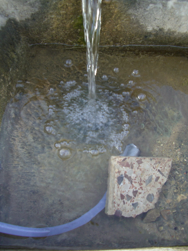 Wir finden die Trinkwasserquelle und erkunden ein wenig die Gegend. wir wollen wissen, ob es jemanden stören könnte, wenn wir unseren knapp 300 l fassenden Tank auffüllen.