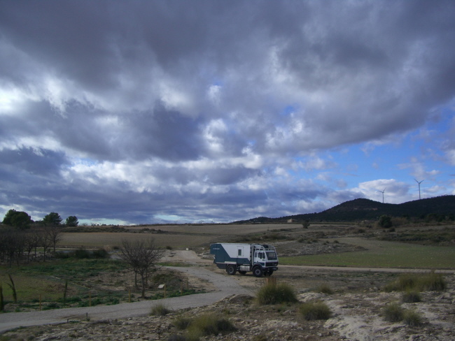 Wir erreichen bei Caudete eine Hochebene (immerhin 750 m über NN) über die heftig der Wind pfeift