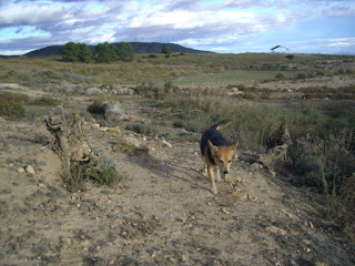 Lotta beim erkunden der Kaninchenbauten in der Umgebung