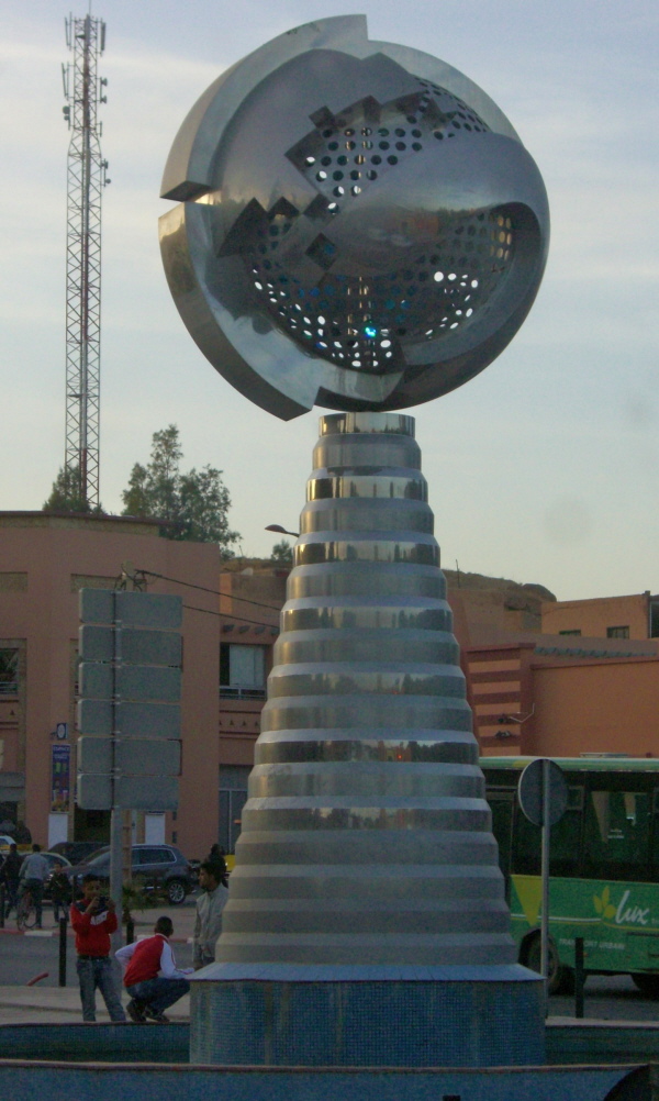 Ouzazarte empfängt uns mit einem auffällig aufgeräumten Stadtbild. Die allseits beliebten Kreisverkehre sind mit riesigen Skulpturen verziert…man merkt der Stadt an, das sie “das marokkanische Hollywood” ist.