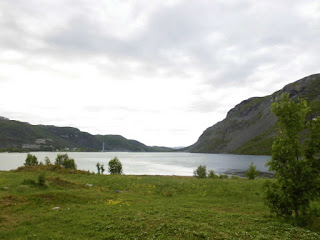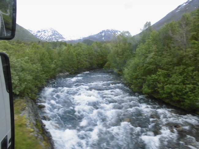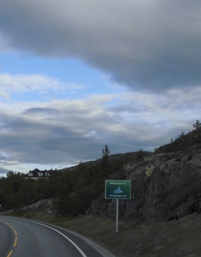 Wir hätten gern den Fluß Alta, der direkt hinter der Stadt ins Meer mündet gern noch genutzt, um unsere Angelausrüstung noch einmal auzuprobieren. Der Fluss ist voller Lachse und deshalb kommen Touristen aus alles Herren Länder hierher zum angeln. Aber man kommt nur schwer an den teilweise mit steilen Felsabbrüchen begrenzten Fluss. Da, wo er flach und breit dahinfließt und seine Ufer sanft abfallen, könnte man natürlich angeln, aber das wissen die Campingplätze und Hotels der Gegend auch schon lange: man darf hier also nur auf einem (entsprechend vollen und teuren) Campingplatz stehen und außerdem darf hier nur mit kostenpflichtigen Erlaubnisschein geangelt werden.