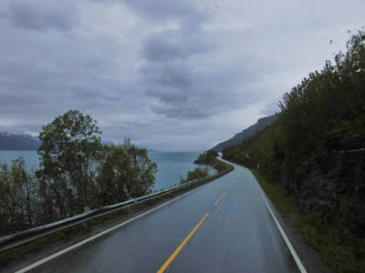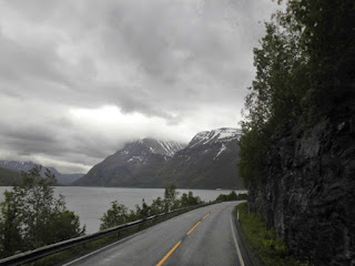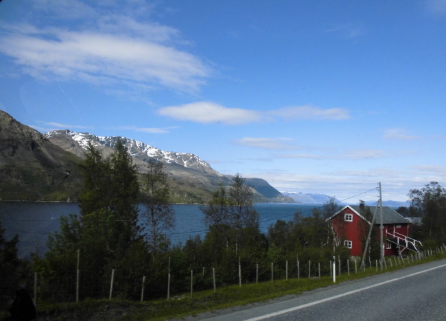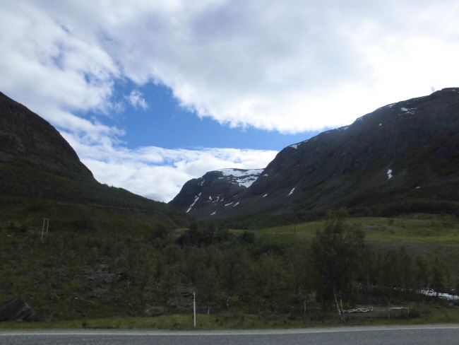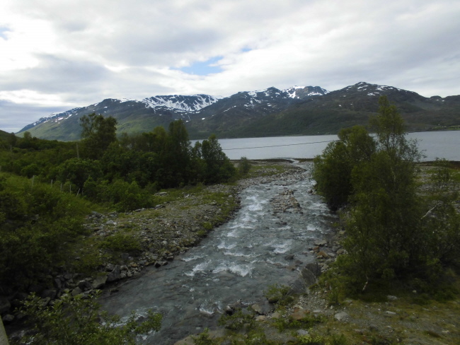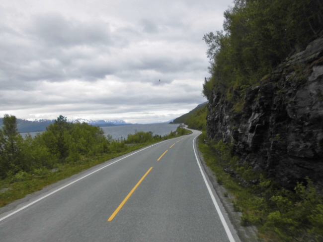 Die E6 windet sich weiter am Wasser entlang  – mit wunderbaren Ausblicken auf die Berge!