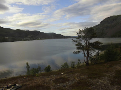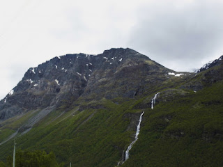 Unterwegs halten wir an, um unsere Wasservorräte mit dem guten norwegischen Wasser aufzufüllen. Die Wasserstation hat eine nette Aussicht: