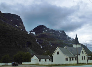 Pffft – sollen die doch ihren Fisch behalten! Nach einem letzten Blick auf die Nordlichtkirche fahren wir weiter: ein letztes Stück am Fjord entlang und dann geht es wieder in die Berge. Hier suchen wir uns einen Stellplatz, den wir für uns alleine haben.