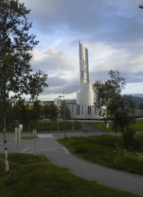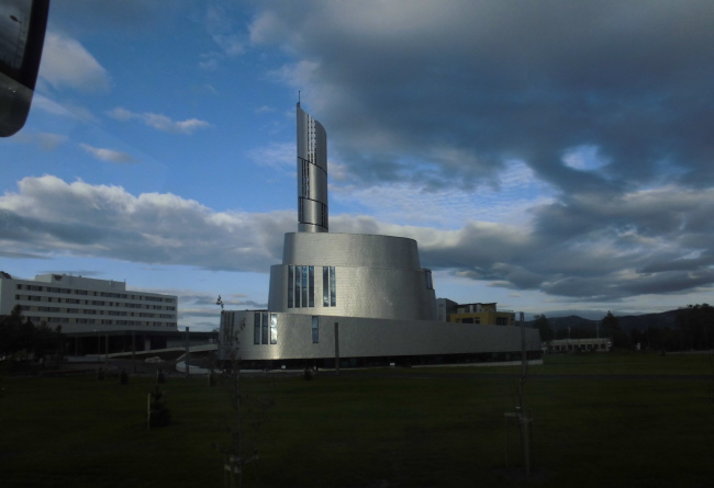 Also bleibt uns vom Nordlicht nur die Nordlichtkirche von Alta, die dem schwingenden Vorhang dieser Lichterscheinung nachempfunden ist.